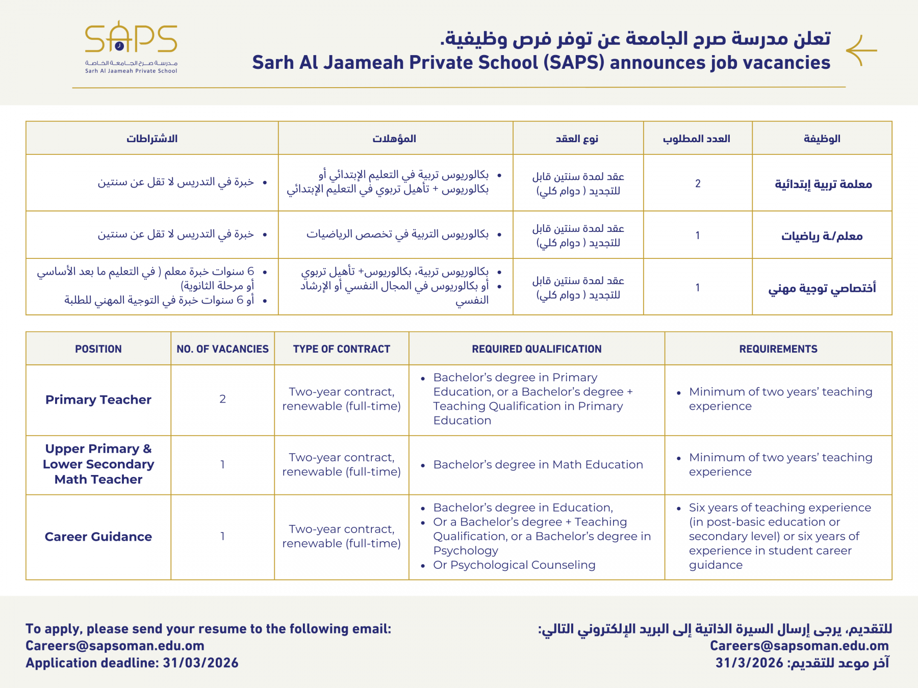 We Are Recruiting for the 2025 -2026. Apply at Careers@sapsoman.edu.om